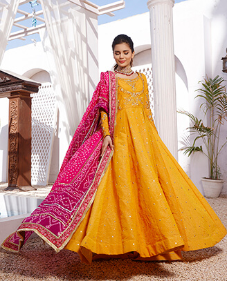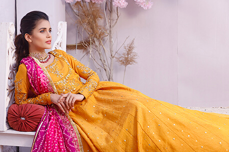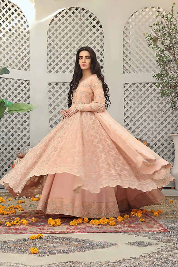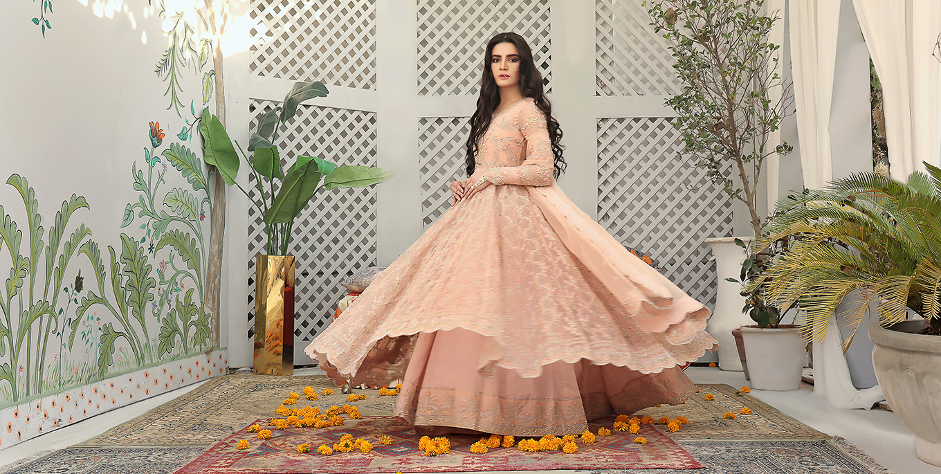 Bridal Collections - Wajahat Mansoor has dreamed these bridals, imagining how the fabric will move gracefully while his clients (his muse) moves, how every individual crystal will sparkle as the sun sets, how a perfectly-placed adorned neckline will frame the shining face of the regal bride, and how the feeling of creating her own timeline will last.