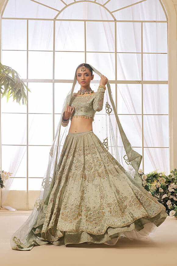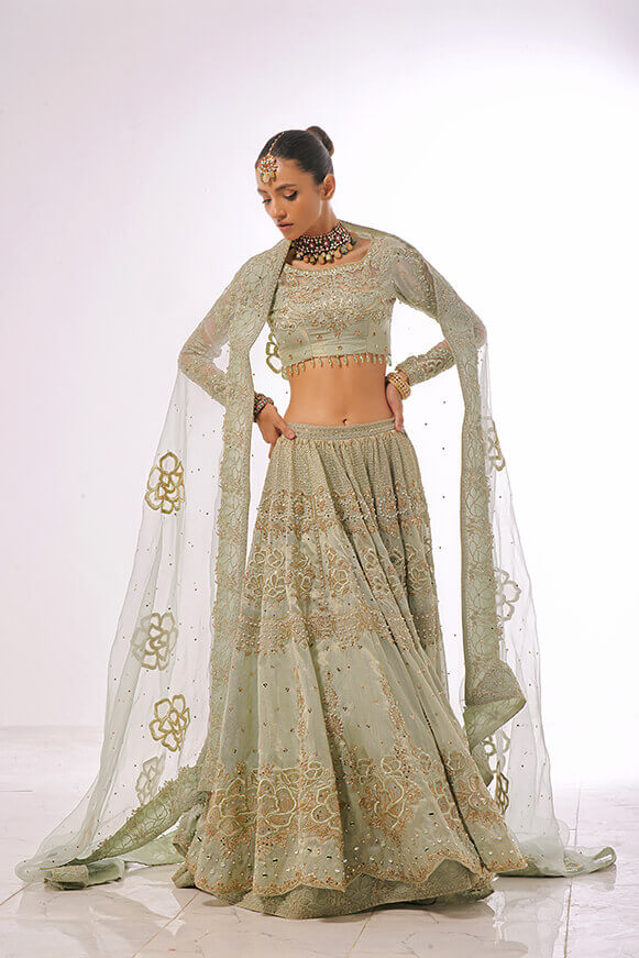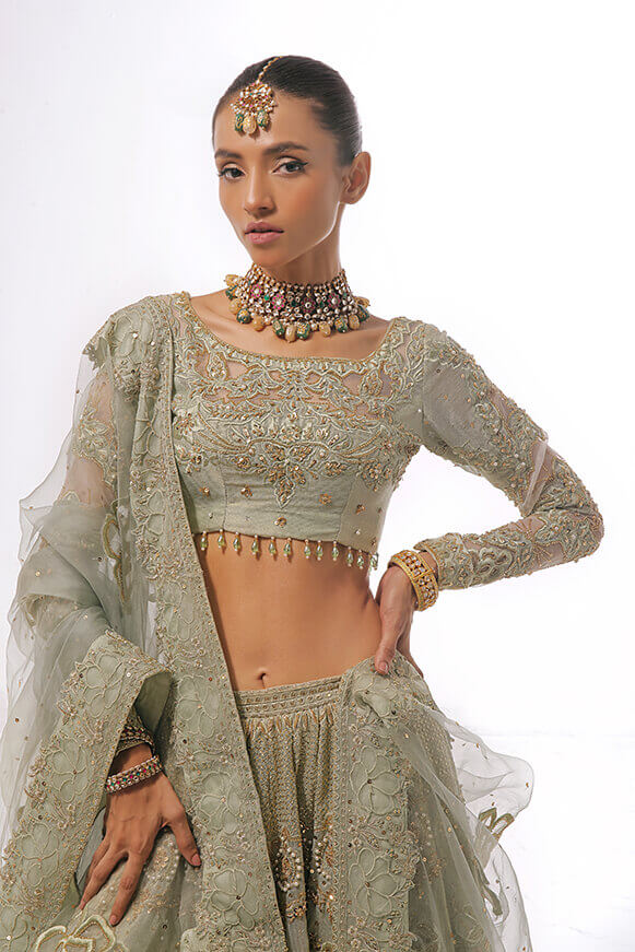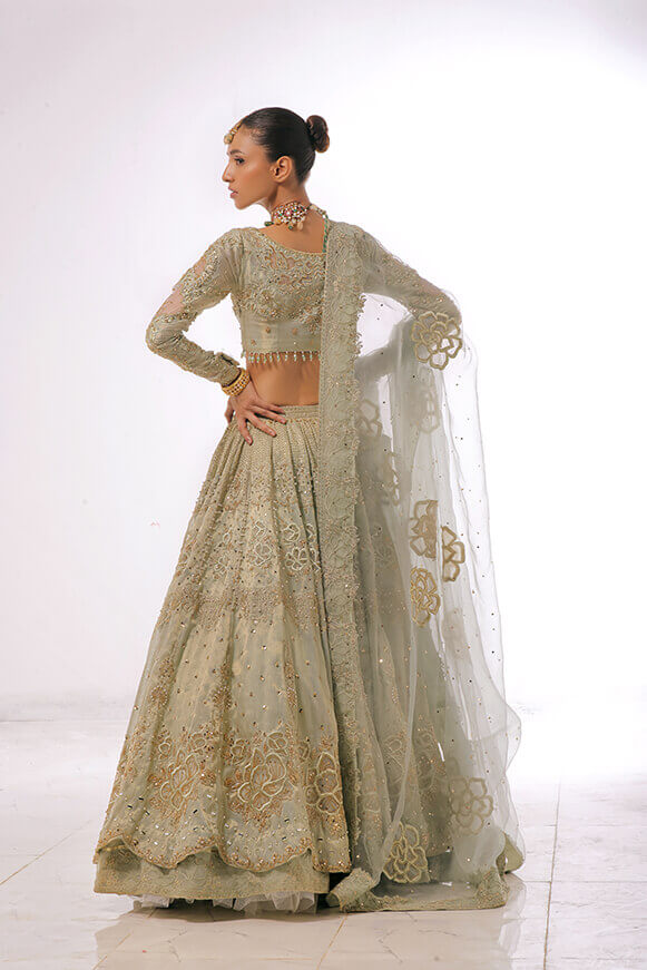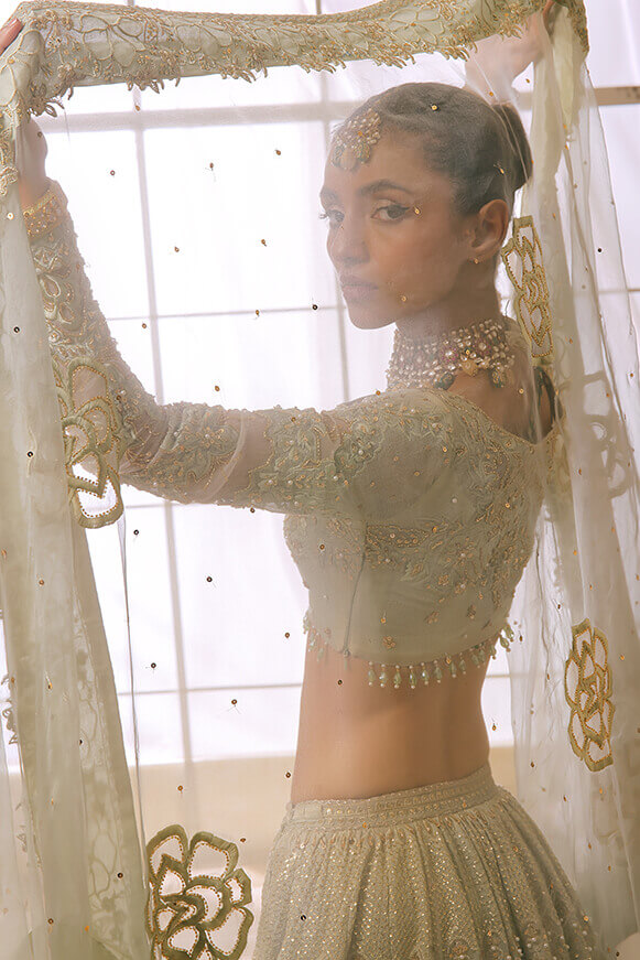 A complete hand crafted lehenga choli with applique work techniques. Intricate handwork with 10 yards of lehenga